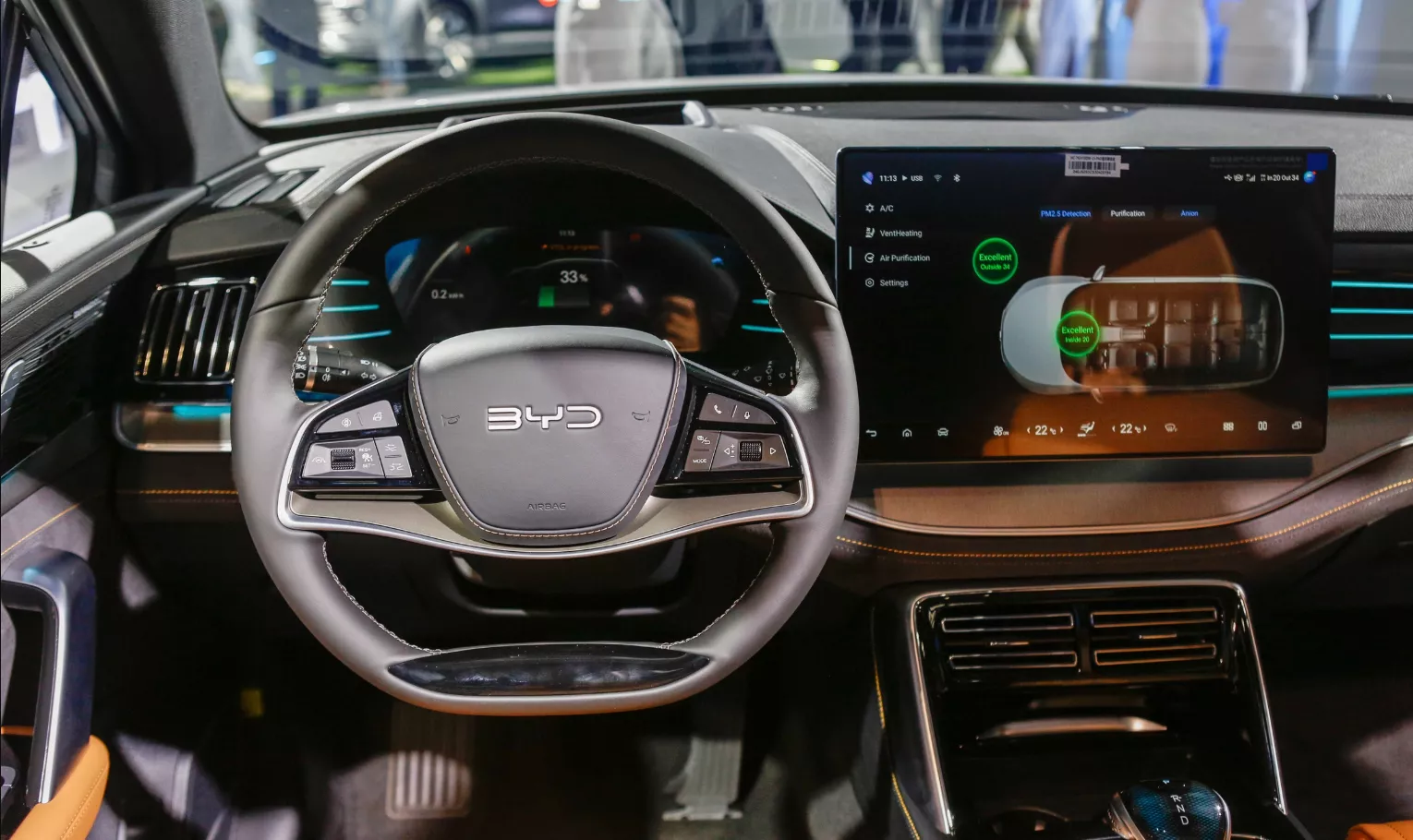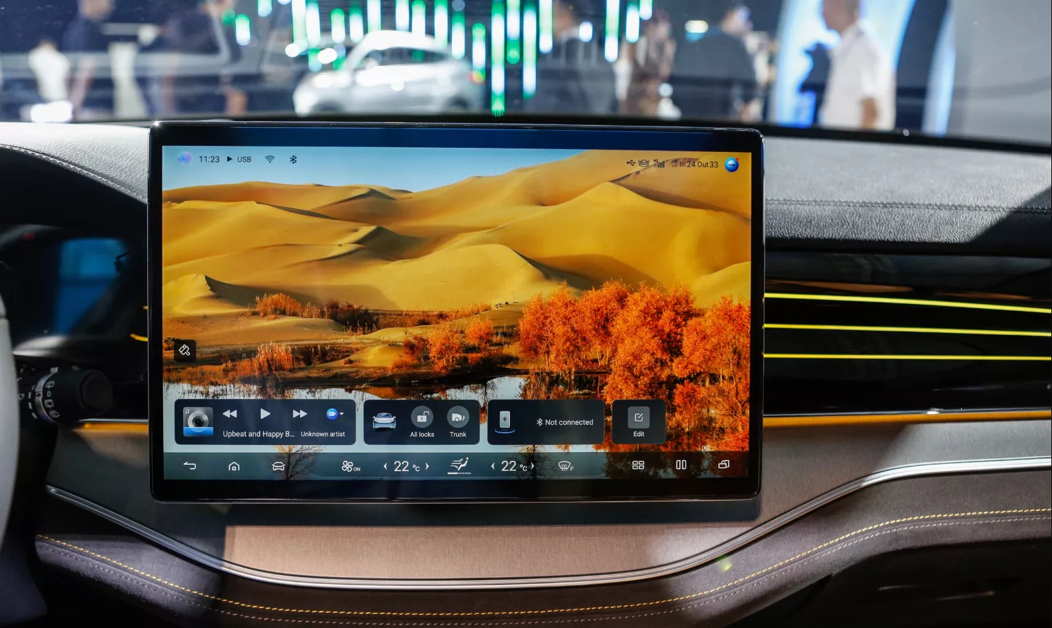Điểm nhấn nổi bật trong nội thất Sealion 8 là màn hình giải trí cảm ứng xoay 15,6 inch, hỗ trợ kết nối không dây Apple CarPlay/Android Auto, tích hợp công nghệ điều khiển bằng giọng nói cho phép điều khiển nhiều chức năng trên xe. Xe còn được trang bị sạc không dây công suất lớn 50W, giúp sạc nhanh các thiết bị di động.