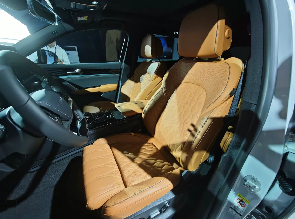 Không gian nội thất của BYD Sealion 8 được thiết kế sang trọng và hiện đại với nhiều trang bị cao cấp hướng đến sự thoải mái tối đa cho người sử dụng. Toàn bộ ghế ngồi được bọc da Nappa cao cấp, tích hợp đầy đủ các chức năng làm mát, sưởi ấm và massage, mang lại cảm giác thư giãn cho hành khách trong suốt hành trình. Hệ thống điều hòa tự động 4 vùng độc lập cho phép từng vị trí ngồi có thể tùy chỉnh nhiệt độ theo ý thích, đảm bảo sự thoải mái cho mọi hành khách.